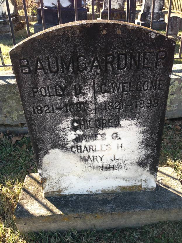 I also found the John Welcome Baumgardner and wife Polly headstone.