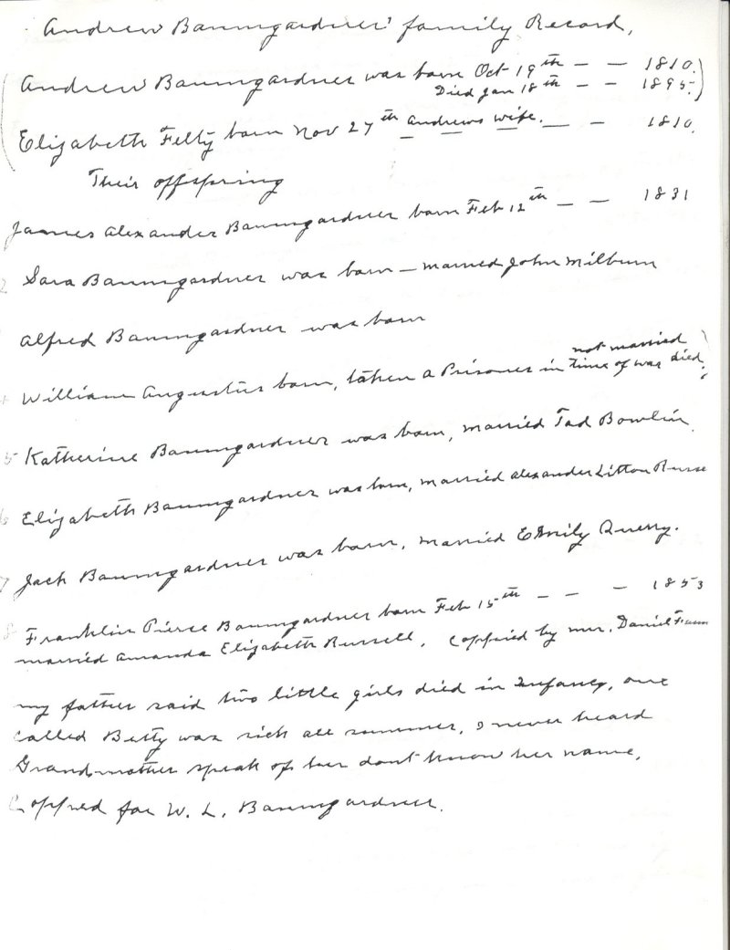 Page 3 - Andrew Baumgardner Family Record.