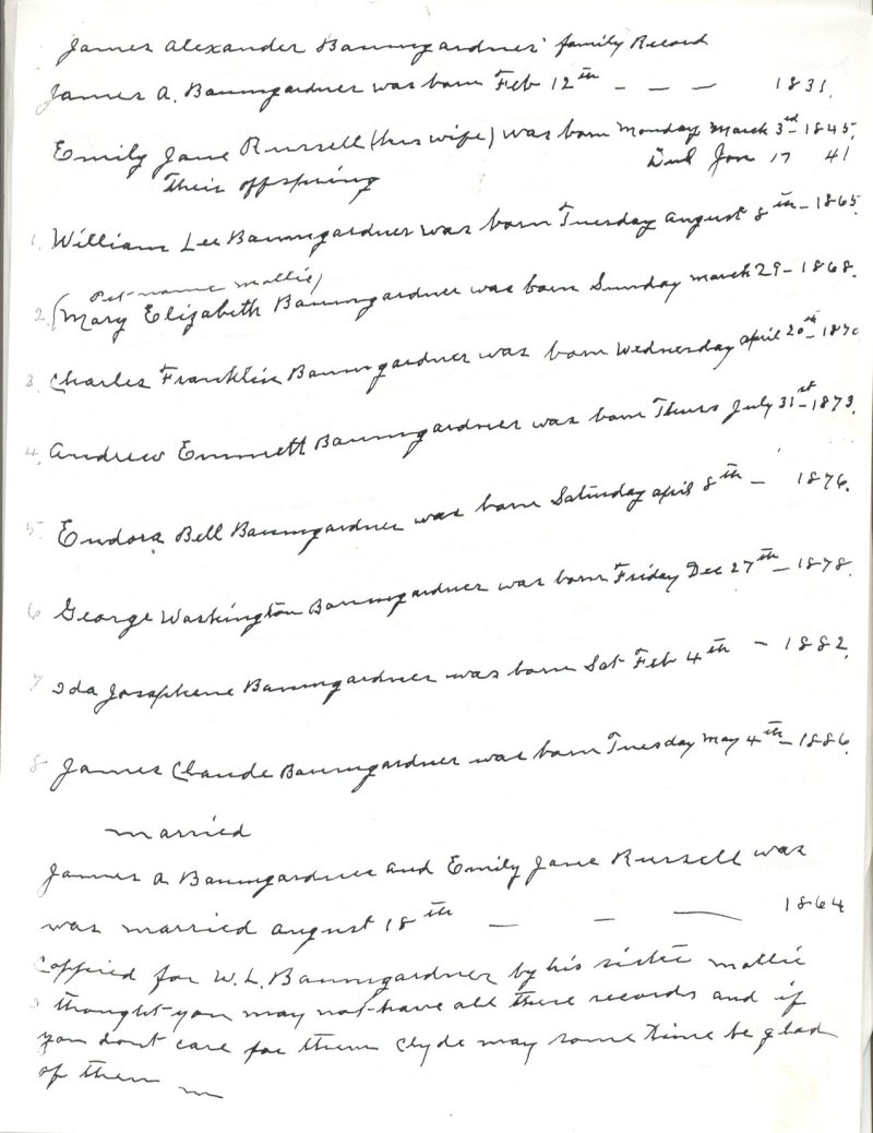 Page 4 - James Alexander Baumgardner Family Record.