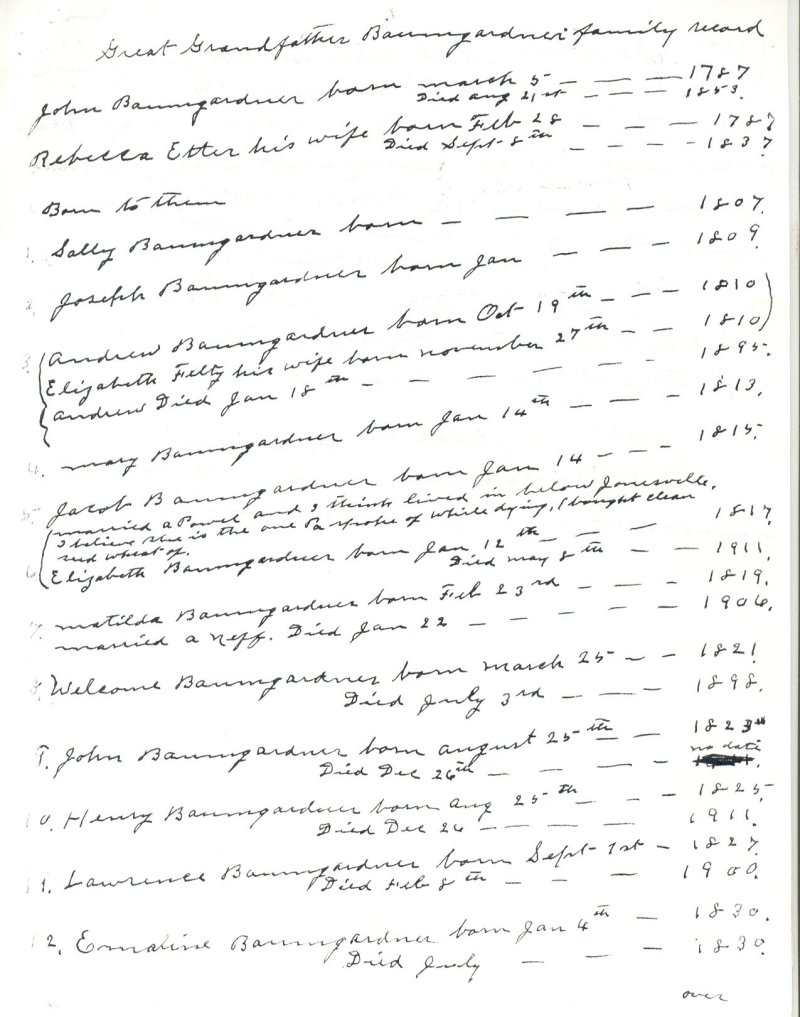 Page 5 - Great Grandfather Baumgardner Family Record.