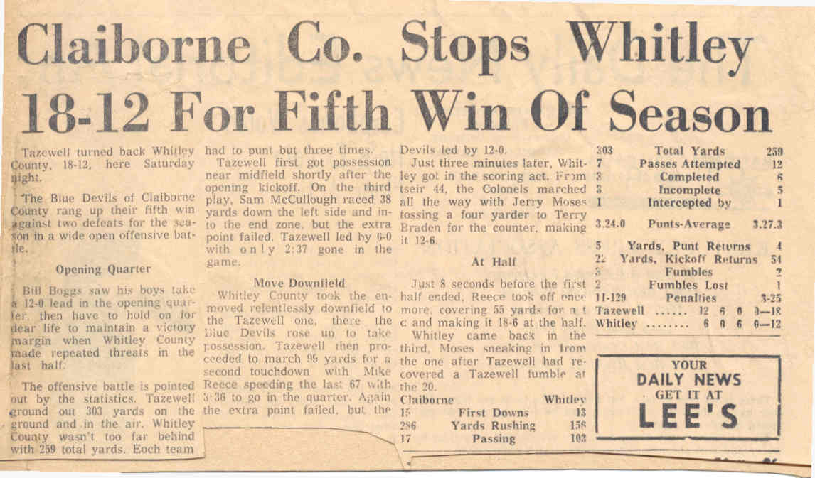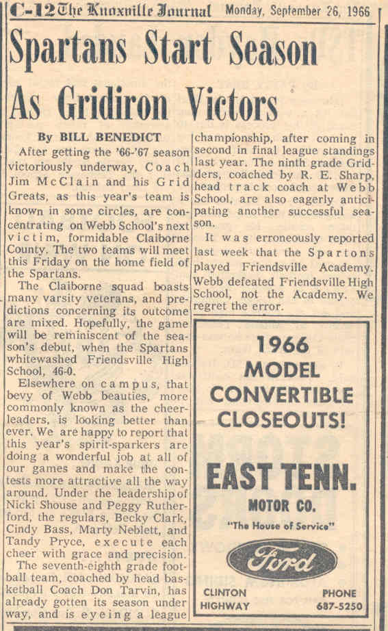 ![]() Rita Cardwell Greene, Charolette, North Carolina, one of, if not the first Drum Major for a Claiborne County High School Band has posted a couple pictures on Facebook of interest. The one above is a Fall 1967 picture of the Cheerleading Squad heading out to the Homecoming Parade. Left to right - Martha Yoakum, Marsha Billingsley., Kathy Rutherford, Alma Poore, Joy Jesse, Emily Elam and Betsy Payne. |