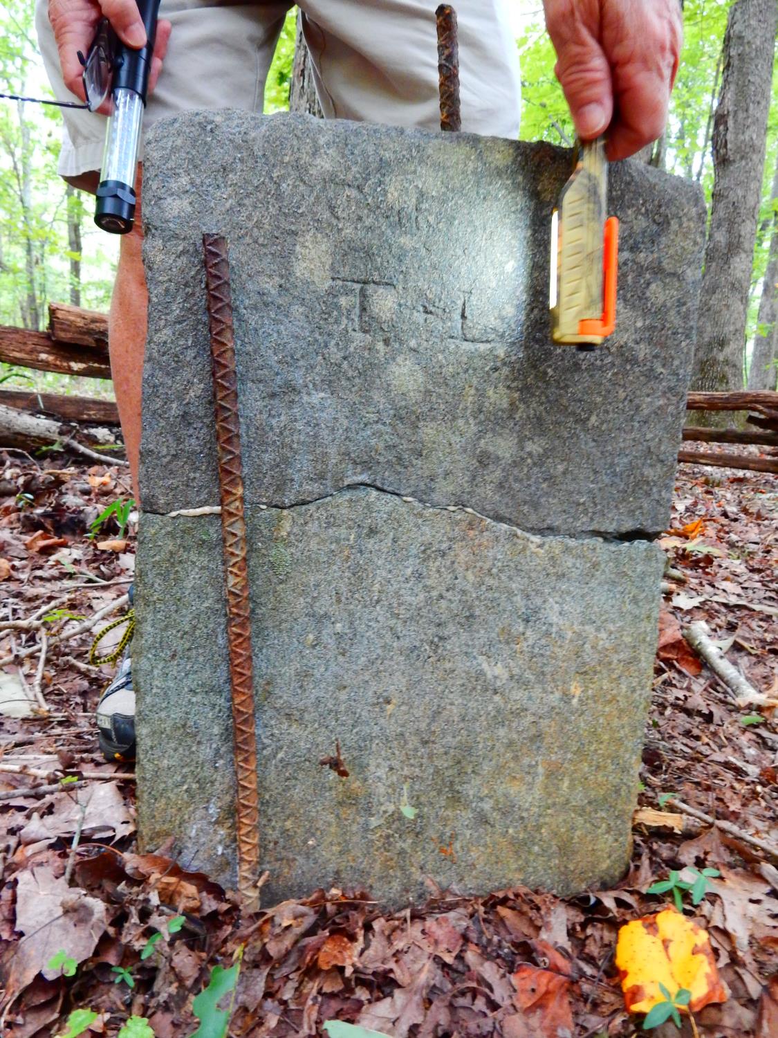 6647 - Using a flashlight to highlight inscription on Thomas Livesay, Sr., gravestone