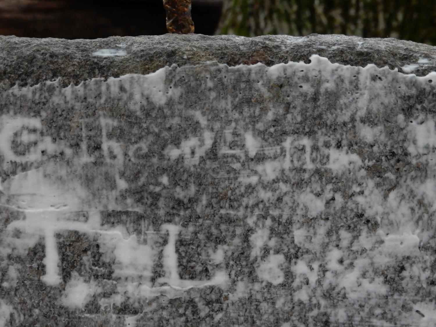 6659 - Using shaving cream to determine Thomas Livesay Sr. gravestone inscription (left side cropped)