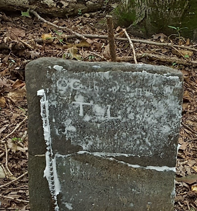 115830 - Thomas Livesay Sr., gravestone with shaving cream applied (note huge tree trunk)
