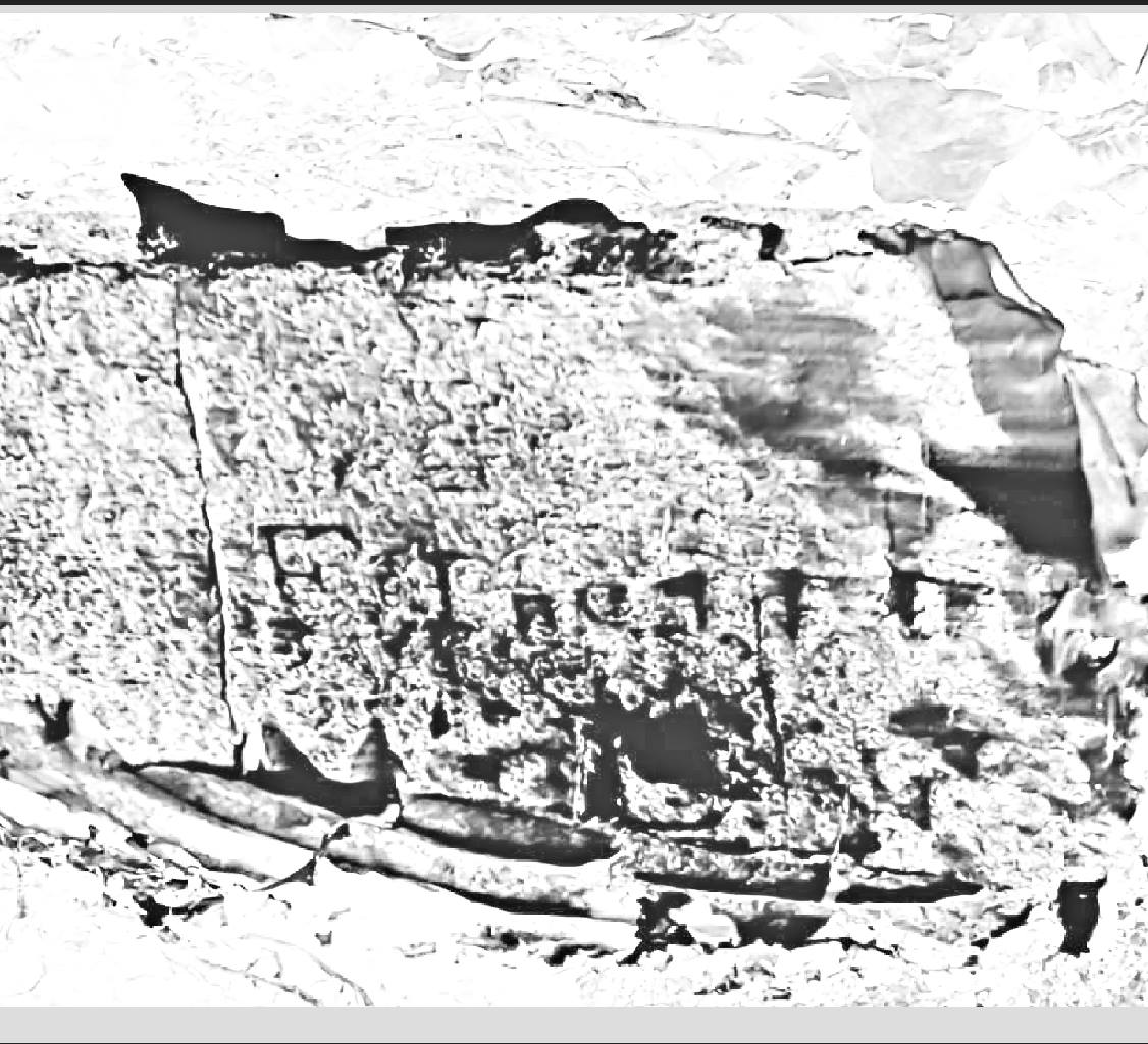5832 - Postive to negative enhanced photo of Margaret (Stones) Livesay Young gravestone ("M + L partially obscured with shaving cream)