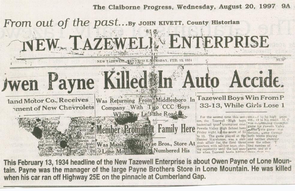 14.Charles Franklin Payne (John Paul, Robert Wesley) was born in Lone Mountain, Tennessee @ home. He died in 1980 in Florida.