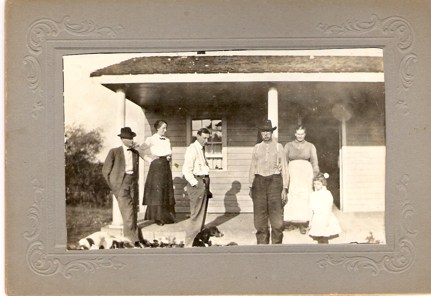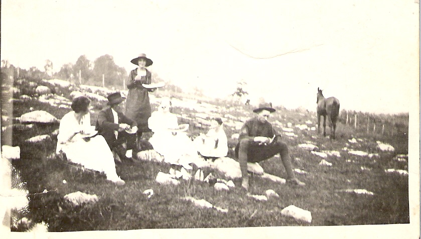 "pasture land on Campbell farm in Tenn." I don't know when this photo was taken, but do know that the lady in the black dress with the black hat is Lottie Campbell Neill, daughter of Arthur L. Campbell. Am assuming the others are Tennessee Campbells.